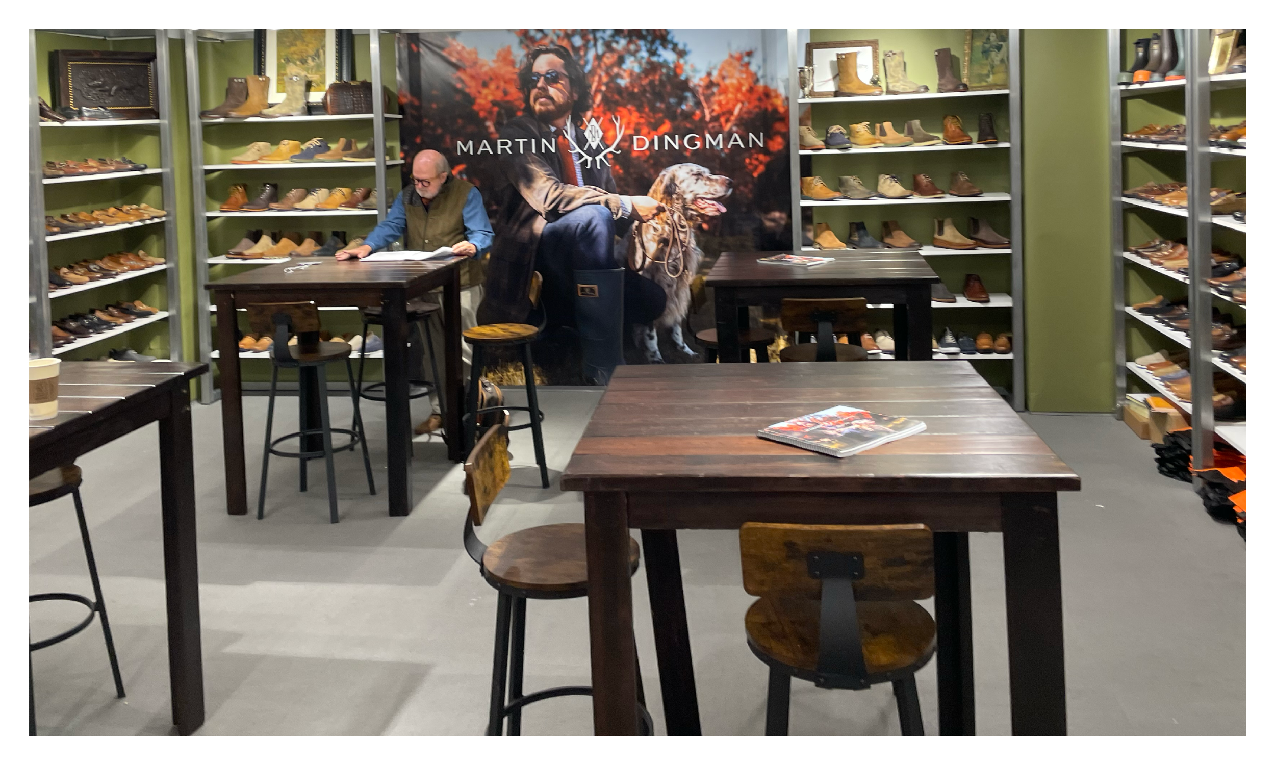 Old-school masculine charm. Think Sam Elliott in Tombstone, or Big Lebowski if you prefer. Solid weathered wood seat and back on black steel frame.