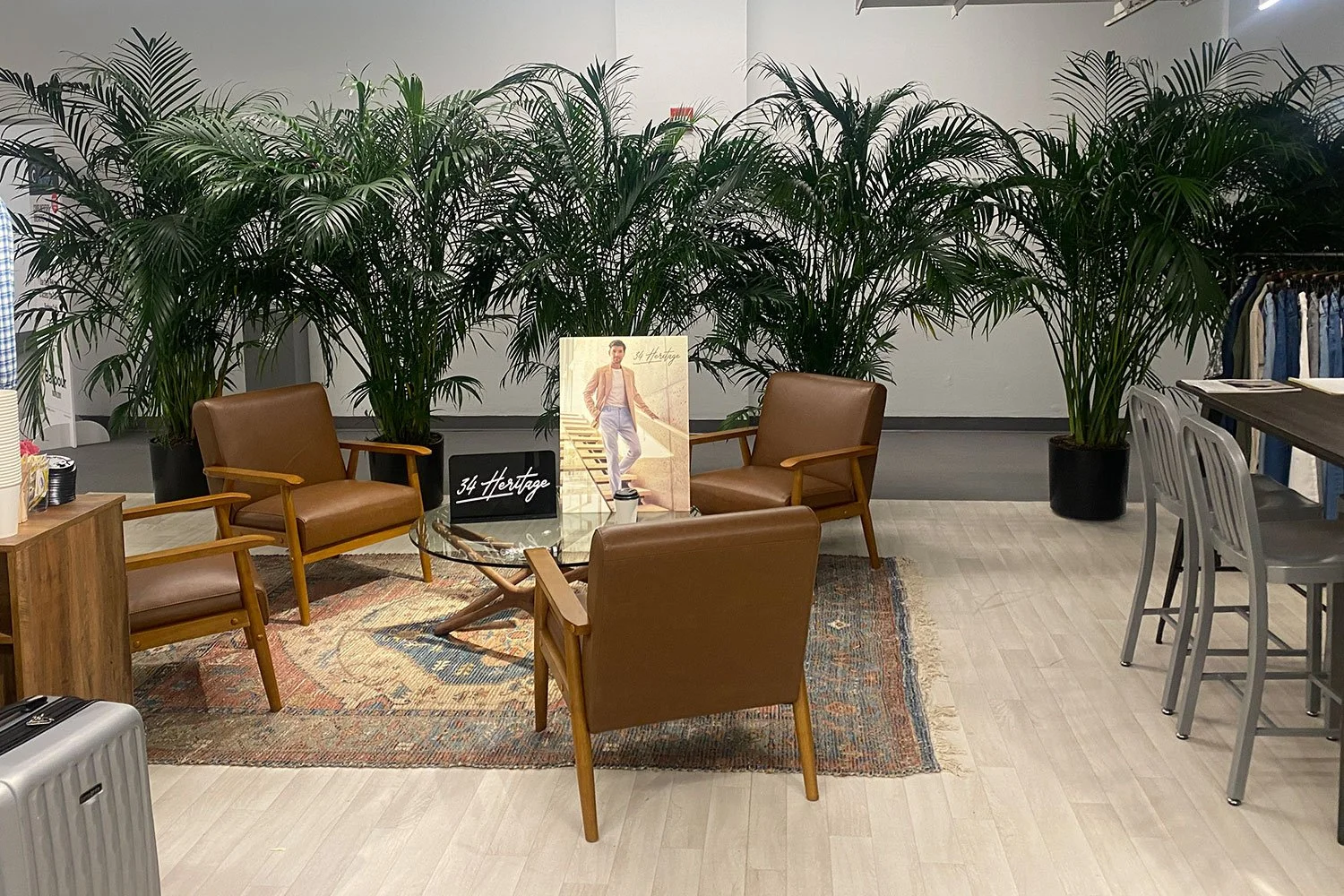 Lounge table with a heavy glass top on a solid ash walnut base. A dramatic table for a light and airy space.